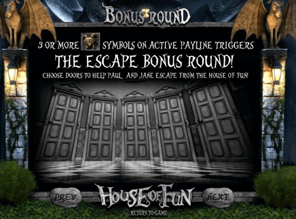 При выпадении трех бонусных символов в виде дверной ручки запускается еще один бонусный раунд. Здесь перед гемблером появляется пять дверей. Он должен выбирать двери, чтобы помочь ребятам выбраться из страшного замка. За каждой дверью скрывается вознаграждение.