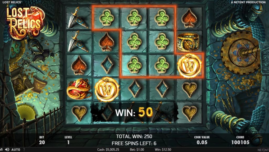 Поскольку в игровом аппарате Утерянное выигрышные цепочки формируются по принципу Cluster Pays, гемблеру необходимо выбрать только количество монет на один спин. После крутят барабан. Надо нажимать на кнопку Старт или же запустить автоматический режим. Его можно остановить в любой момент, чтобы изменить текущую ставку. Если во время Авто игры выпадает бонус, то его запускают вручную.