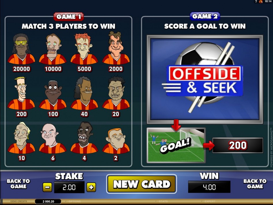 Разработчиком игрового автомата Offside And Seek является компания Microgaming. Тематика слота посвящена футболу. Это скретч-карта с двумя игровыми полями. На одном из них доступен мгновенный выигрыш, а на другом проходит мини-игра под названием «Забить гол». Максимальный призовой фонд составляет 100 тысяч денежных единиц.