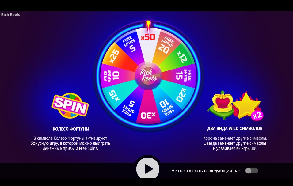 Разработчиком слота Rich Reels (Богатые барабаны) является провайдер Evoplay. Это симулятор классического типа, который напоминает игровые автоматы, стоявшие в залах наземных казино. Слот появился на рынке гемблинга в 2019 году. Хоть принцип работы напоминает машины 90-х годов, анимированные элементы и трехмерная графика указывают на новизну продукта.