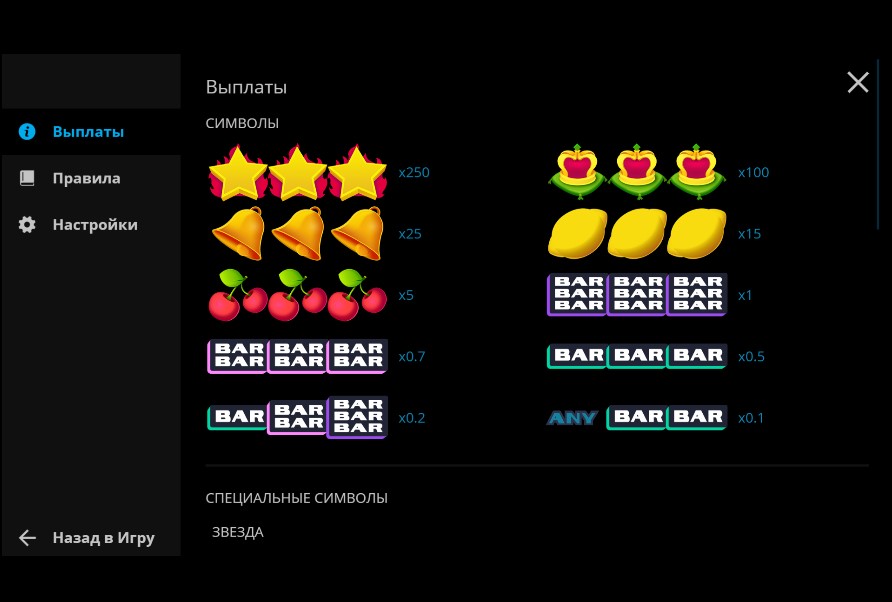 - При выпадении трех символов с надписью «BAR» ставку клиента вернут в полном объеме.