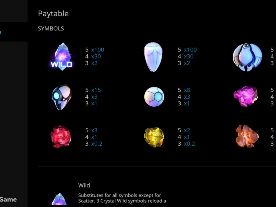 Символ Вайлд представлен алмазом с соответствующей надписью. Если выпадает от 3 до 5 на барабанах, то выигрыш 2-100 монет. Другие элементы оплачиваются в пределах 1-100 кредитов (в зависимости от длины цепочки).