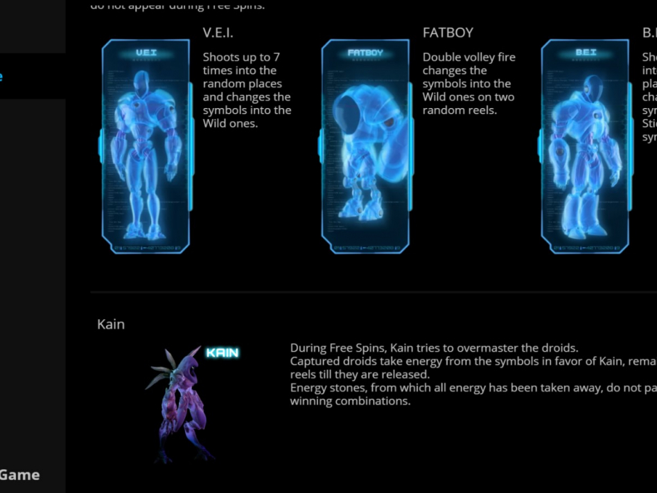 - Когда бонус был активирован роботом V.E.I., то в серии фриспинов 8 случайных элементов окажутся дикими.