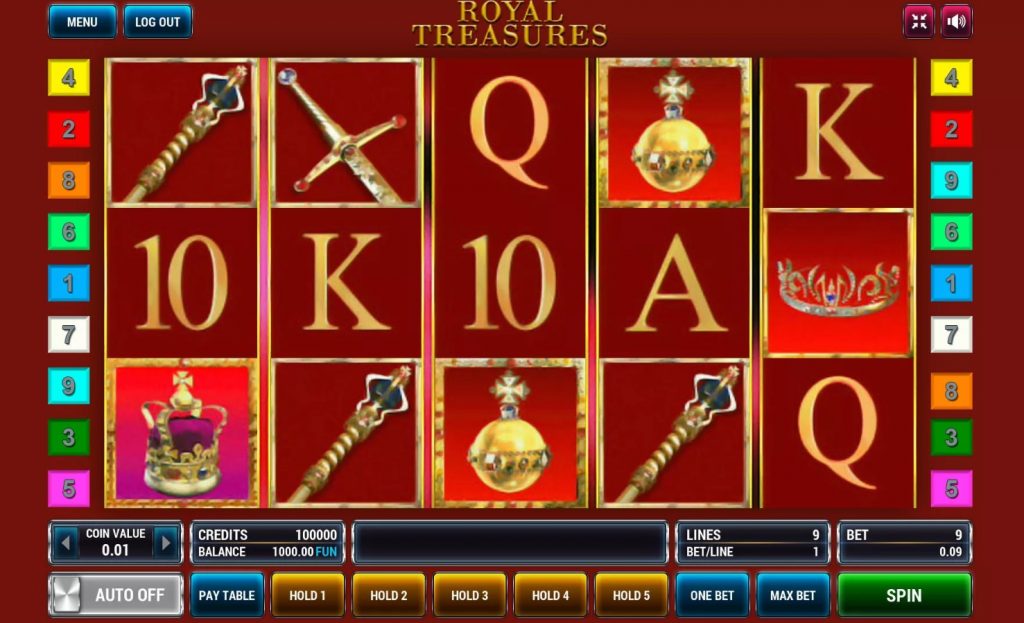 Игровой автомат Королевские сокровища является традиционным девятиполосным слотом с пятью барабанами. Аппарат разработан на платформе Gaminator. В нем не предусмотрен накопительный джекпот.
