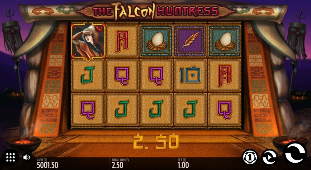 Игровой автомат The Falcon Huntress пользуется популярностью у гемблеров по причине необычной бонусной игры, поскольку практически каждый спин приносит существенный выигрыш. Поэтому главное – не потратить свой депозит до бонуса.