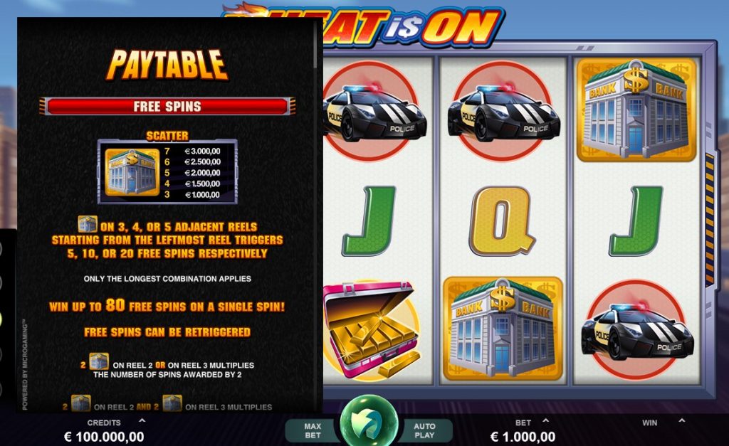 Функции скаттер символа в игре The Heat is On выполняет картинка с изображением банка. При выпадении трех таких элементов игроку дают бесплатные вращения. Три и более символ-разбросов приносят вознаграждение в размере 1-3 монет.