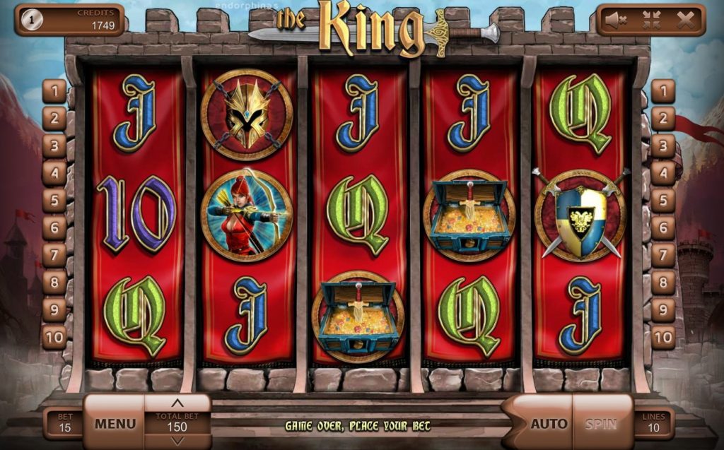 Чтобы поиграть в слот The King бесплатно или на деньги, достаточно найти казино, которое использует азартный софт провайдера Endorphina.