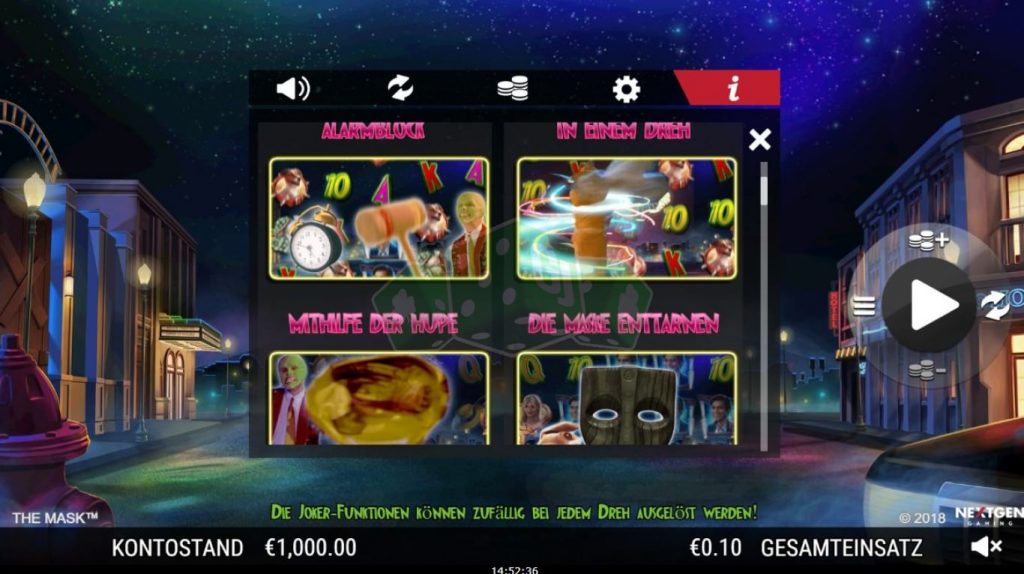 Чтобы игровой аппарат The Mask запускать в демонстрационном режиме, не нужно быть зарегистрированным пользователем. Всем посетителям азартного заведения доступны демо-игры. Счет тоже не нужно пополнять, ведь ставки делают в виртуальных монетах.