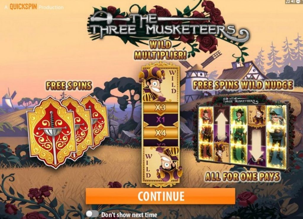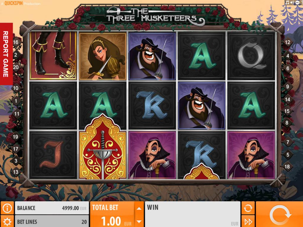 Производитель азартного софта – компания Quickspin решила воплотить героев известного произведения А. Дюма в симуляторе The Three Musketeers. Главными персонажами слота Три мушкетера стали Атос, Портос, Арамис, Миледи и Кардинал. Дикий символ, бонусные вращения, хорошая отдача и большие выигрыши за один спин – все это преимущества видеослота, которые привлекают гемблеров.
