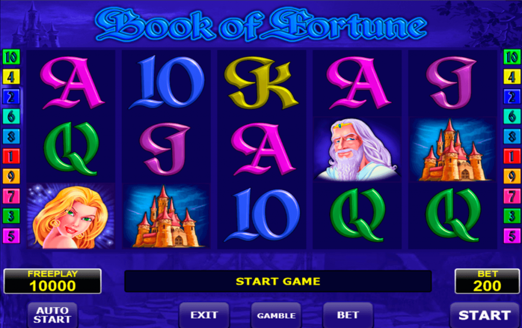 - Book of Fortune. Данный видеослот придется по душе поклонникам жанра фентези. Геймеры могут примерить на себя роль героя и спасти принцессу. Book of Fortune. Выделяется благодаря наличию супер-бонусного символа – книги. При сборе 3 книг активируется дополнительный раунд, позволяющий сорвать невероятный выигрыш.