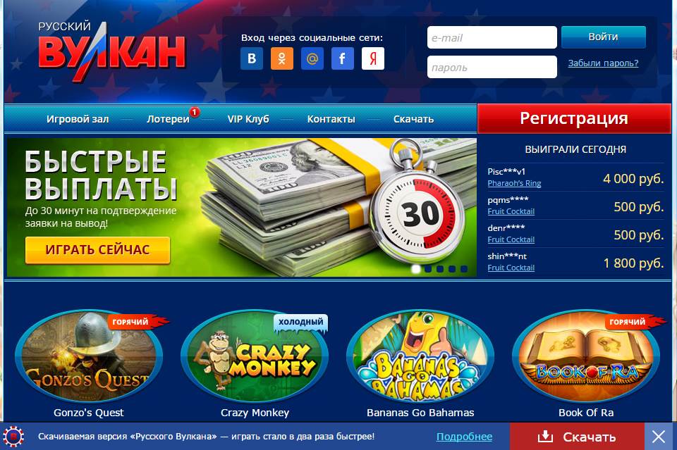 - Русский Вулкан. Сегодня данное казино пользуется наибольшим спросом у жителей СНГ, ведь здесь предлагается русифицированный интерфейс, поддерживаются самые популярные платежные системы, а также предлагаются крупные приветственные бонусы. В Русском Вулкане можно отыскать софт от многих провайдеров, в том числе часто встречаются слоты от BetSoft. Средняя отдача у них составляет 95,7%.